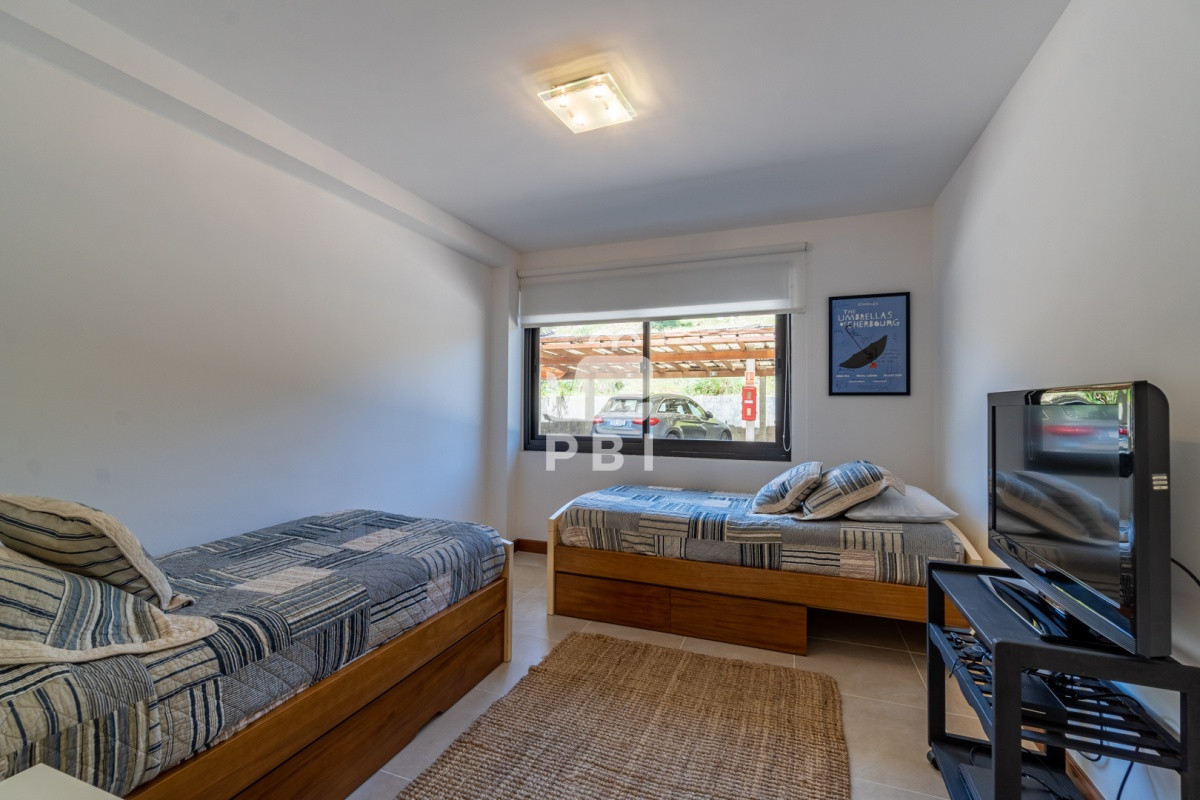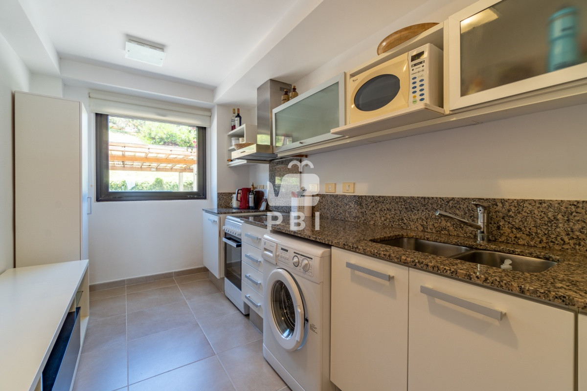 Amplia terraza con vista al mar y parrillero, living comedor, cocina definida con lavadero, 2 dormitorios en suite, toillete.