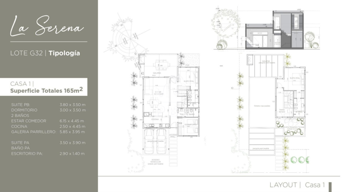 La misma cuenta con 3 dormitorios, 2 de ellos en suite, 3 baños, living comedor con cocina integrada, parrillero con pérgola y estacionamiento para dos autos.
